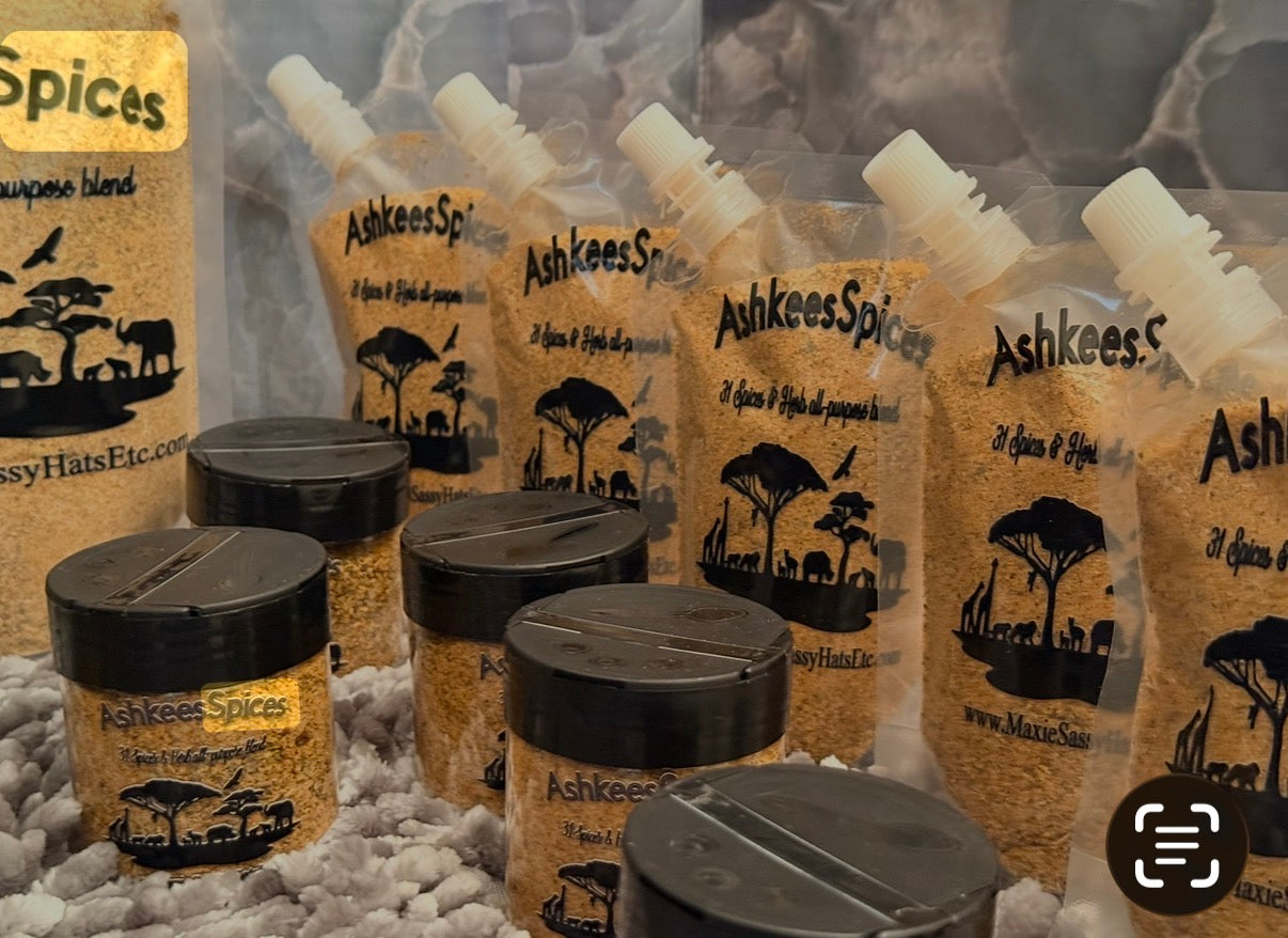 Meet Ashkees Spices, your kitchen’s secret weapon — a handcrafted blend of 31 premium spices and herbs designed to elevate every dish. Whether you’re seasoning meats, veggies, soups, or snacks, each sprinkle unlocks layers of bold, mouthwatering flavor. It's that good, addictive taste that lingers in the brain while you're seasoning things